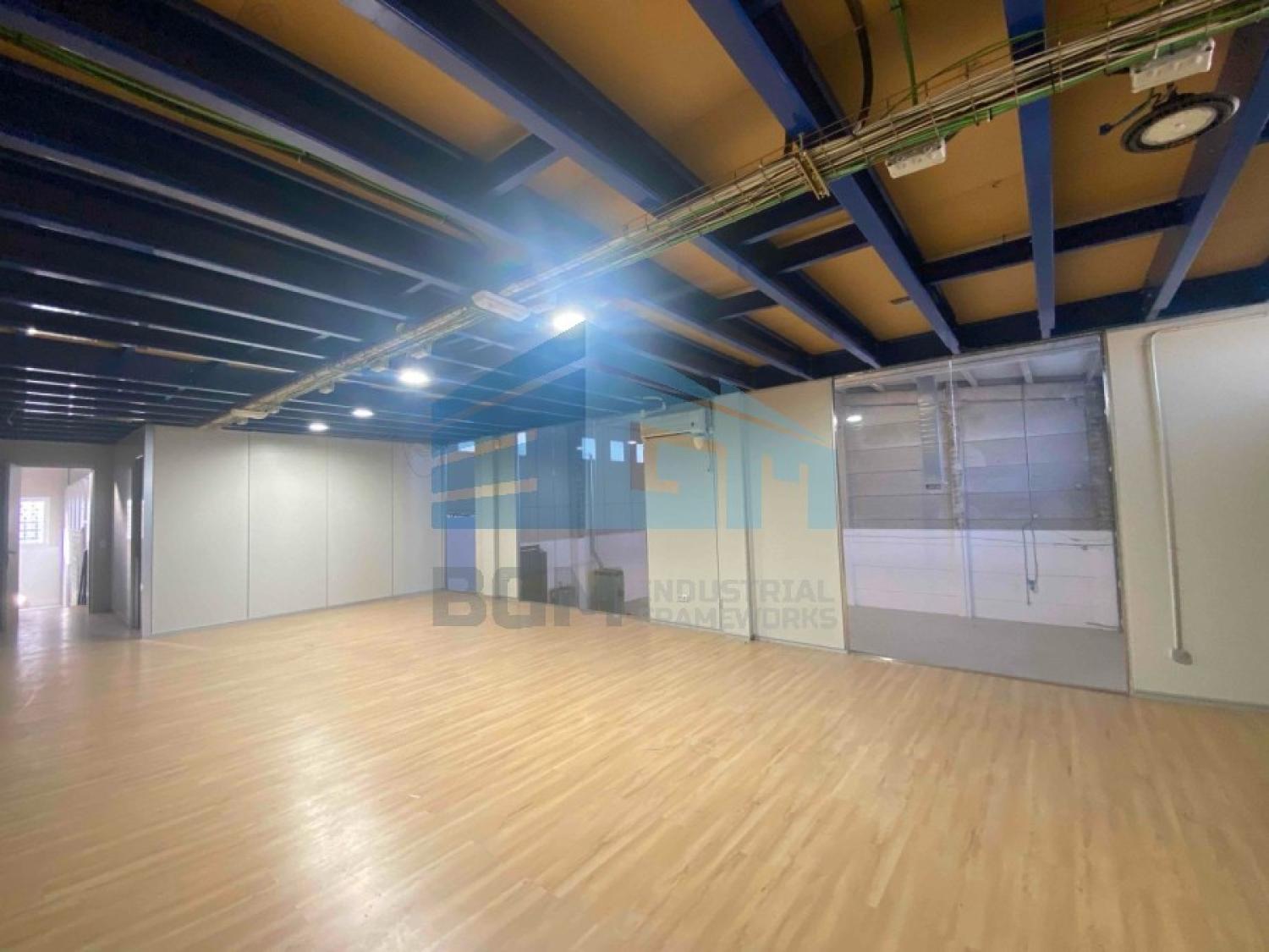 650 m2 en planta distribuida en modulo interior de oficina y servicios de unos 60 m2 con acceso independiente, sala cerrada de 75 m2 y zona diáfana de almacenaje. Planta primera y planta segunda para uso de oficinas, con sala diáfana, show room y despachos. Características: Fachada calle, adosada, amplia calle de acceso y plataforma delantera, baño-vestuario (H/M), 1 pasos de carruajes, entrada peatonal a la oficina, instalación eléctrica, red de incendios, y agua corriente.