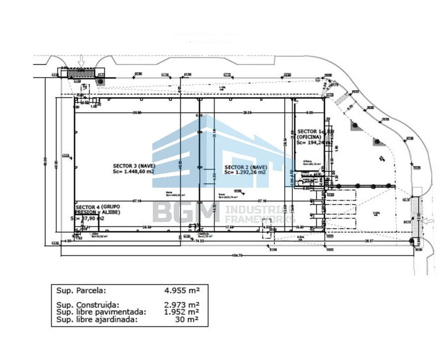 Almacén de de 2.740,86 m2 en 2 sectores de 1.448,60 m2 y 1.292,26 m2