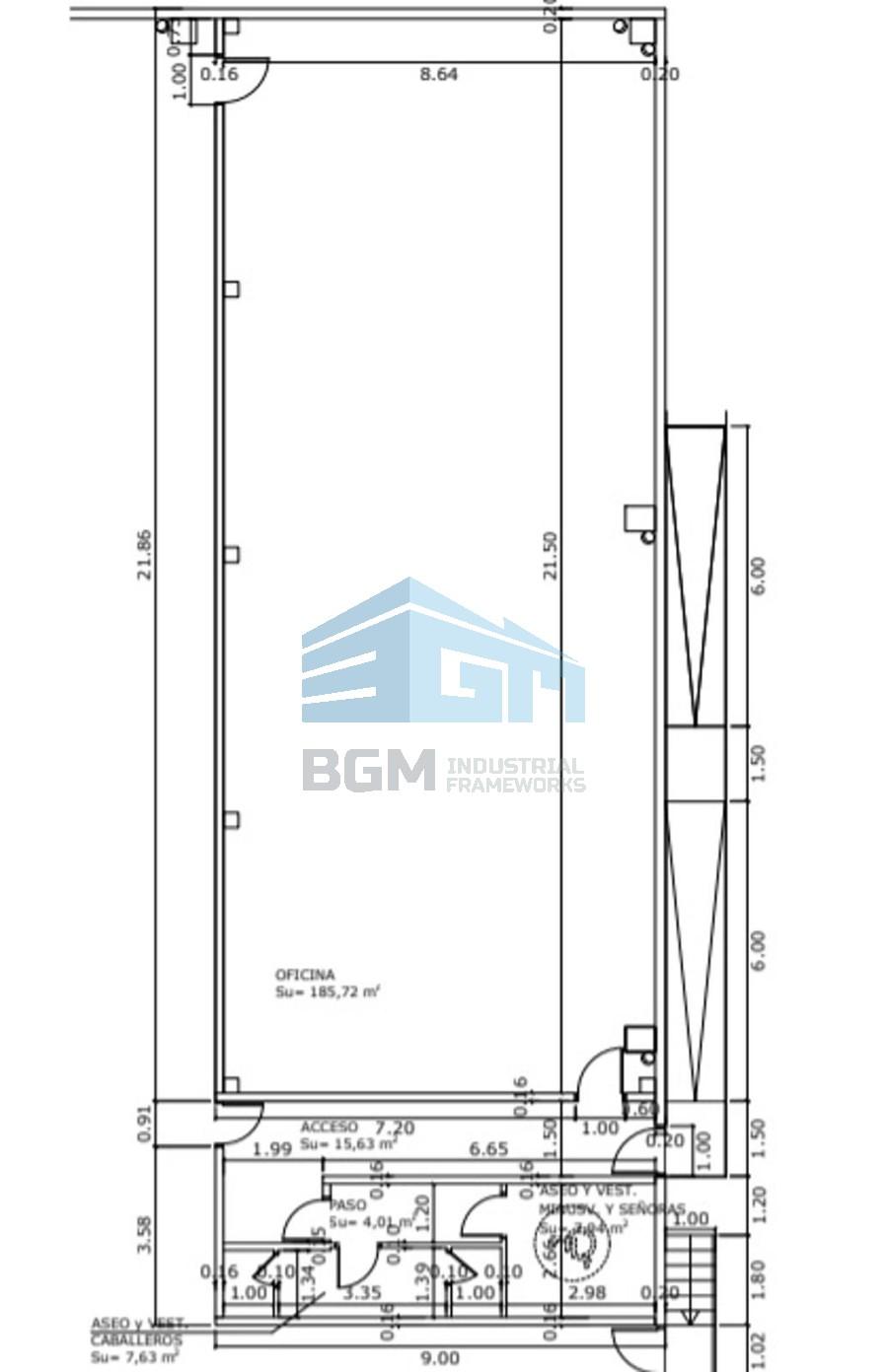 10 m de alturaOficinas de 194.24 m22 paso de carruajes, acceso peatonal, ménsulas para puente grúa de 10T., instalación eléctrica con iluminación LED, central de incendios con de detectores de humos, acometida de BIES contra incendios con aljibe y grupo de presión.